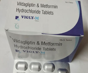 Vigly M Tablet, This medication is an oral antidiabetic agent, prescribed for type 2 diabetes. It helps control blood sugar levels.